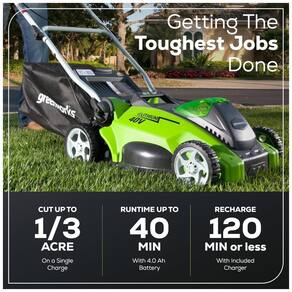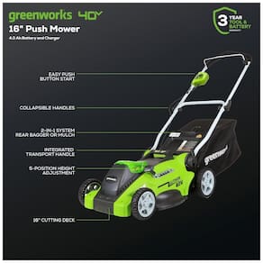 Renove o cuidado com seu gramado com a Inovação Greenworks 40V! Transforme seu trabalho no jardim com o Cortador de Grama Elétrico Greenworks 40V, um divisor de águas para proprietários em busca de potência, praticidade e sustentabilidade. Seja para manter um gramado suburbano aconchegante ou para navegar em cantos difíceis, este cortador combina um desempenho robusto de 40V com a facilidade do design sem fio. Por que você vai amar: 1. Simplicidade sem gasolina: Acabe com cordas de arranque, trocas de óleo ou odores de postos de gasolina. Basta apertar um botão e cortar! 2. Leveza e agilidade: Deslize facilmente por terrenos irregulares ou aclives. Perfeito para gramados de vários níveis. 3. Operação silenciosa: Corte cedo ou tarde sem incomodar os vizinhos — ideal para agendas agitadas e vida em comunidade. 4. Amplie seu conjunto de ferramentas: Já possui ferramentas Greenworks 40V? Use a mesma bateria para roçadeiras, sopradores, serras elétricas e muito mais! Na caixa: Cortador de Grama a Bateria 40V 16" Bateria de Lítio 4.0Ah Carregador de bateria Conjunto de montagem Junte-se a milhares de proprietários EcoSmart! Invista em uma experiência de cuidado com o gramado mais limpa, silenciosa e sem complicações. Adicione o Cortador de Grama 40V Greenworks ao seu carrinho hoje e libere o potencial do seu conjunto de ferramentas ao ar livre! Potência sem esforço para terrenos extensos: Experimente um desempenho similar ao da gasolina sem complicações — 45 minutos de autonomia contínua com uma única bateria 4.0Ah, carga completa em 2 horas. Perfeito para pequenos e médios gramados de até um acre. Design ultraleve: 35% mais leve, plataforma de corte de 16" com alças ergonômicas e partida por botão, tornando a manobra mais fácil — ideal para usuários que priorizam conforto e facilidade de armazenamento. Sistema inteligente de ajuste de corte: Controle de altura de 5 posições com alavanca única de 1.25" a 3.375" que se adapta a qualquer tipo de grama. Sistema 2 em 1 de corte e coleta traseira maximiza a gestão de aparas. Sem manutenção, máxima economia: Sem custos de gasolina/óleo, emissões ou ajustes de motor. Economize US$ 200 anualmente em comparação com cortadores a gasolina, com operação silenciosa a 75 dB. Valor do ecossistema completo: Inclui bateria, carregador rápido, saco de grama. Funciona com 75 ferramentas Greenworks 40V — roçadeiras, sopradores, serras elétricas... amplie seu conjunto de ferramentas sem fio.