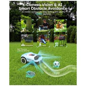 Mapeamento hands-free automático incorpora Controle de Cruzeiro Adaptativo (ACC) e detecção de bordas por IA via sistema de 4 câmeras, identificando limites e gerando rotas de corte otimizadas, com acompanhamento adaptativo de bordas para operação remota intuitiva. Sistema de evitação de obstáculos inteligente usa câmera de 300° com algoritmos de IA para reconhecer mais de 1000 objetos de jardim em tempo real, preservando distância segura e respondendo instantaneamente a elementos variáveis.