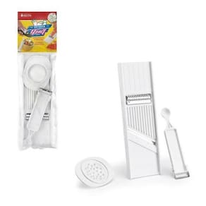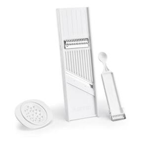 Este kit é do tipo indispensável para a cozinha Com ele você consegue preparar um número enorme de receitas. Com o Mandoline, as fatias são cortadas com uma espessura uniforme, o que é particularmente importante para assar e fritar por exemplo, para batata chips, assim como é importante na apresentação de pratos. Com o fatiador você obtém tiras longas e finas, obtidas perfeitamente e com muito menos habilidade e esforço do que seria necessário se estivesse cortando com uma faca. Utilize também para ralar queijos, fazer batata palha, macarrão de abobrinha etc. O Descascador é ideal para descascar cenouras e outros vegetais. E finalmente com o Boleador você faz bolinhas decorativas com queijo, manteiga, frutas e legumes Deixando a apresentação dos pratos muito mais bonita Kit Descascador/Boleador 4 em 1 Keita Composição : plástico PS e aço inox Validade : Indeterminada Contém 1 Cortador dupla face 1 Protetor 1 Descascador 1 Boleador Fabricante/Marca : Keita Dimensões: Cortador dupla face: 24 cm x 8 cm x 1,5 cm. Boleador e descascador: 16 cm x 4 cm x 1cm Marca: Wcan Ean: 7895843904270