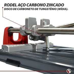 Cortador De Pisos Cerâmicos Azulejos Porcelanatos 90Cm Hd900 Descrição: Os cortadores profissionais da linha hd são indicados para cortar pisos cerâmicos e porcelanatos com até 10 mm de espessura. Sistema de separação na parte superior do carro guia; Guias em aço carbono cromado; Limitador para corte lateral garantindo medidas uniformes em cortes retos ou em diagonal; Carro-guia e barra de encosto em alumínio injetado; Rodel cortante com haste em aço carbono zincado e disco de carboneto de tungstênio wídia . Especificações: Sistema de separação fabricado em aço e tratado termicamente para maior vida útil; Barra de encosto em alumínio injetado proporcionando alta resistência e durabilidade; Limitador lateral para cortes retos e diagonais precisos; Base e suporte das guias em chapa de aço carbono com pintura eletrostática a pó; Alça para transporte; Pé antiderrapante. Comprimento máximo de corte: 900 mm Tamanho máximo de piso para corte diagonal: 640mm x 640mm Espessura máxima de corte: 10 mm Rodéis para : 80mm / 80 mm duplo Comprimento: 1035 mm Largura:182 mm Altura: 94,5mm Peso: 6,800 kg