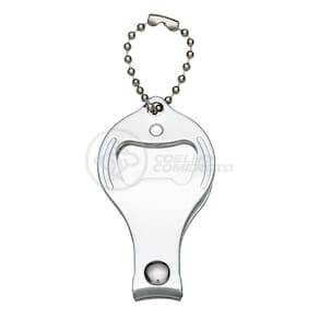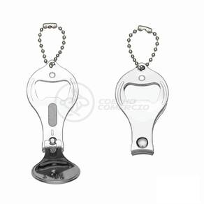 Cortador de unhas chaveiro de metal 3 em 1: abridor, cortador e lixa. Parte central circular ideal para gravações, detalhe de traços no contorno circular. Lado frontal com detalhes em relevo nas laterais e pequeno círculo acima do abridor. Para utilizar o cortador basta rotacionar a peça circular e levantá-la. Acompanha correntinha.Especificações: - Tamanho do item: 3,2 x 1 x 5,9cm; - Peso do item: 27g.Conteúdo da Embalagem:- 1 x Cortador de unhas. Marca: Draik