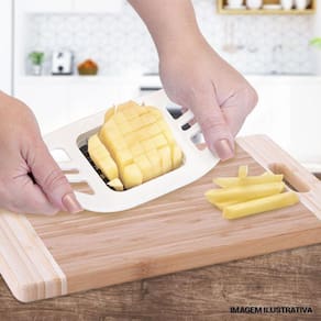 Com o Cortador e fatiador de batatas palito com abas em Aço Inox você terá batatas fatiadas em palitos em poucos segundos de forma muito prática.Além de conseguir fatiar outros legumes, pois suas lâminas em aço inox tem precisão no corte e com abas em plástico garantem um ótimo apoio deixando o corte perfeito do alimento.Leve para sua cozinha esse fatiador e economize tempo na hora de preparar as mais deliciosas receitas.Informações importantes;Medidas aproximadas - 18 x 9,5cm(Comprimento x Largura)Medidas aproximadas de uma lamina para outra - 1cm(Diâmetro)Composição - Plástico poliestireno, Aço inoxCor - Branco e prataValidade - IndeterminadaConteúdo do envio - 1 unidade do Cortador e fatiador de batatas palito com abas em Aço InoxFabricante - KeitaProduto 100% NacionalMais Informações;Corte ao meio para facilitar o apoio.Após o primeiro corte, faça o segundo corte sobre o primeiro corte.E assim sucessivamente.Mantenha fora do alcance de crianças.Cuidados ao manusear, perigo de corte.Conserve as mãos sempre sobre as abas laterais para evitar acidentes. Cortador e fatiador de batatas palito com abas em Aço Inox