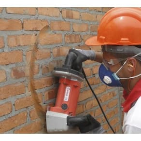 o cortador de parede foi projetado para executar cortes retos e curvos em paredes de tijolos maciços ou com furos, blocos de cimento, paredes rebocadas ou com gesso.