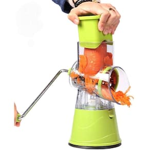 cortador Manual de Batata Cenoura Legumes Ralador de Queijo aço Inoxidável Lâminas de Cozinha ferramenta equipada com 3 lâminas de aço inoxidável de alta qualidade, resistente e lâmina afiada. simples mecanismo de manivela gira tambor e cria perfeitamente ralado ingredientes. Para operar e fácil de limpar. ótimo para batatas fritas, salada de repolho ralar. perfeito para ralar queijo, legumes, batatas, batata doce, nozes, cebolas e muito mais . A base de sucção garante aderência e estabilidade em uma superfície plana.