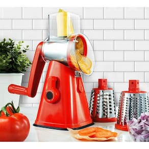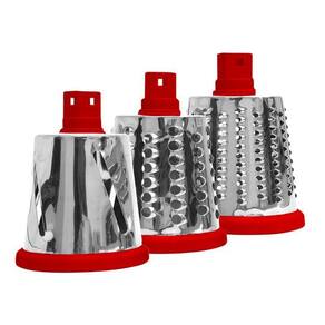 Ferramenta equipado com 3 lâminas de aço inoxidável de alta qualidade, resistente e lâmina afiada. O tamanho pequeno, economiza espaço. Fácil troca de cilindros para diferentes opções de culinária. Simples mecanismo de manivela gira o tambor e cria perfeitamente ralado ingredientes. Fácil de limpar.