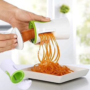 Cortador Fatiador de legumes vegetais Jullienne Espiral Basta colocar o vegetal no centro e torcê-lo como se estivesse afiando um lápis, simples assim. Você pode usar qualquer tipo de vegetais, como abobrinha, cenoura, rabanete e pepino. Prepare fios espirais contínuos ou fatias de fita ondulada de seus vegetais e frutas favoritas com este Cortador de Legumes em Espiral Contínuo ou Fatiado 3 em 1. Adicione este Cortador de Legumes em Espiral divertido e saudável à sua cozinha para fazer massas de vegetais para sua família aproveitar. Ideal para aqueles que seguem o baixo teor de carboidratos, sem glúten. Possui design confortável, seguro e ergonômico, projetado especialmente para proporcionar uma experiência fácil ao usuário. Além disso, é feito de plástico 100% sem BPA que é seguro para sua cozinha. Lâminas de ABS e SS sob teste de segurança alimentar SGS para matéria-prima. Dimensões: 07 cm largura x 07 cm profundidade x 14 cm altura . Peso: 110 g. Material: Aço Inox Plástico. Conteúdo: 01 Cortador de Legumes em Espiral Contínuo ou Fatiado 3 em 1. Cuidados especiais: Lave-a pelo menos duas vezes por semana, utilizando detergentes neutros e esponja macia. Evite usar produtos abrasivos, eles podem causar riscos e arranhões nos utensílios. Lave em água corrente, secando logo em seguida para evitar manchas. : 90 dias para defeitos de fabricação, caso o produto chegue com , pedimos a gentileza de entrar em contato conosco o mais rápido possível para que possamos providenciar a troca. Marca: Não Informado