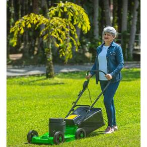 Vantagens: - Equipados com botão trava de segurança que impede o acionamento acidental da máquina, liberando a partida do motor somente quando pressionado - Cabo ergonômico para maior conforto do operador, dobrável, facilitando o transporte e armazenamento - Trava para extensão elétrica - Rodas de polietileno de alta densidade, revestidas com PVC - Motores de indução, monofásicos de 2 polos, instalados num compartimento de polietileno de alta densidade para proteção contra descargas elétricas - Base em chapa de aço de 1,9 mm de espessura - Lâmina em aço especial com espessura de 3 mm, com têmpera por indução no fio de corte - Regulagem de altura de corte: Em 5 posições, com variação de 3,3 a 7 cm - sistema de regulagem de altura individual nas 4 rodas - Todas as peças metálicas recebem tratamento anticorrosivo e pintura com tinta a pó de poliéster polimerizado em estufa a 220 C, garantindo maior durabilidade e acabamento