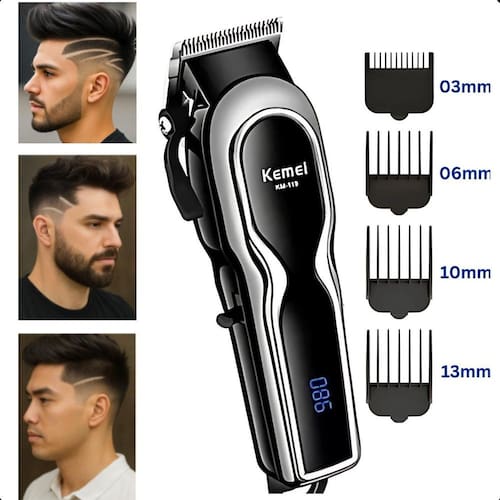 Cortador kemei km-119 display para cabelo Descrição do anúncio: Conteúdo da embalagem: 1 máquina de cortar cabelo kemei km-119 4 pentes de tamanhos variados 1mm, 2mm, 3mm e 4mm 1 cabo de carregamento 1 escova de limpeza 1 óleo lubrificante Características: 4 pentes de tamanhos variados: para atender a todas as necessidades de estilo e comprimento de cabelo. Corte preciso e uniforme: lâminas afiadas de cromo chapeado para um corte suave e sem falhas. Uso flexível: pode ser Utilizado com ou sem fio, oferecendo mais praticidade. Tempo de uso prolongado: até 240 minutos de uso contínuo após carregamento completo. Design ergonômico: facilita o manuseio e proporciona conforto durante o uso. Especificações: Marca: kemei Modelo: km-119 Material da lâmina: cromo chapeado de aço Tamanho do produto: 180 x 45 mm Peso líquido: 0.72 kg Cor do produto: prata Voltagem: bivolt 110v-220v Tensão do motor: 3.7 v Potência do corpo: 1w Tipo de : de impulso Velocidade do motor: 6800 rpm Método de uso: recarregável/usar direto na tomada Indicador led: sim Capacidade da bateria: 2600mah Tempo de carregamento: cerca de 3 horas Tempo de uso: cerca de 60 min Uso indicado: para todas as pessoas Principais perguntas sobre o produto e respostas: 1 qual é a autonomia da máquina após a carga completa A kemei km-119 oferece até 240 minutos de uso contínuo após o carregamento completo. 2 a máquina é adequada para uso doméstico e Sim, a kemei km-119 é projetada para oferecer cortes de alta qualidade, tanto para uso doméstico quanto . 3 a máquina pode ser Utilizado sem fio Sim, a kemei km-119 pode ser Utilizado com ou sem fio, proporcionando flexibilidade de uso. 4 quais são os tamanhos dos pentes incluídos O produto vem com pentes de 3mm, 6mm, 10mm e 13mm, atendendo a diferentes necessidades de estilo e comprimento de cabelo. 5 como faço para manter a máquina em boas condições É recomendável manter a máquina em um ambiente seco e aplicar regularmente o óleo lubrificante nas lâminas. Além disso, use a escova de limpeza inclusa para remover resíduos após o uso. Marca: Não Informado