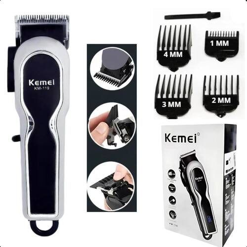 Cortador kemei km-119 sem fio com display Descrição do anúncio: Conteúdo da embalagem: 1 máquina de cortar cabelo kemei km-119 4 pentes de tamanhos variados 1mm, 2mm, 3mm e 4mm 1 cabo de carregamento 1 escova de limpeza 1 óleo lubrificante Características: 4 pentes de tamanhos variados: para atender a todas as necessidades de estilo e comprimento de cabelo. Corte preciso e uniforme: lâminas afiadas de cromo chapeado para um corte suave e sem falhas. Uso flexível: pode ser Utilizado com ou sem fio, oferecendo mais praticidade. Tempo de uso prolongado: até 240 minutos de uso contínuo após carregamento completo. Design ergonômico: facilita o manuseio e proporciona conforto durante o uso. Especificações: Marca: kemei Modelo: km-119 Material da lâmina: cromo chapeado de aço Tamanho do produto: 180 x 45 mm Peso líquido: 0.72 kg Cor do produto: prata Voltagem: bivolt 110v-220v Tensão do motor: 3.7 v Potência do corpo: 1w Tipo de : de impulso Velocidade do motor: 6800 rpm Método de uso: recarregável/usar direto na tomada Indicador led: sim Capacidade da bateria: 2600mah Tempo de carregamento: cerca de 3 horas Tempo de uso: cerca de 60 min Uso indicado: para todas as pessoas Principais perguntas sobre o produto e respostas: 1 qual é a autonomia da máquina após a carga completa A kemei km-119 oferece até 240 minutos de uso contínuo após o carregamento completo. 2 a máquina é adequada para uso doméstico e Sim, a kemei km-119 é projetada para oferecer cortes de alta qualidade, tanto para uso doméstico quanto . 3 a máquina pode ser Utilizado sem fio Sim, a kemei km-119 pode ser Utilizado com ou sem fio, proporcionando flexibilidade de uso. 4 quais são os tamanhos dos pentes incluídos O produto vem com pentes de 3mm, 6mm, 10mm e 13mm, atendendo a diferentes necessidades de estilo e comprimento de cabelo. 5 como faço para manter a máquina em boas condições É recomendável manter a máquina em um ambiente seco e aplicar regularmente o óleo lubrificante nas lâminas. Além disso, use a escova de limpeza inclusa para remover resíduos após o uso. Marca: Não Informado