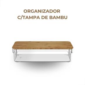 O organizador é fabricado em ps Poliestireno e possui uma tampa de bambu.