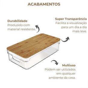 Tenha um ambiente mais organizado com o Organizador de Armário Cozinha Clear com Tampa de Bambu. Garanta já o seu!