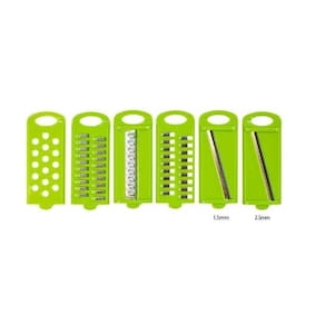 As lâminas do cortador são destacáveis, facilitando não apenas a limpeza, mas também a troca de cortes. Inclui uma variedade de lâminas para atender a todas as suas necessidades culinárias: Lâmina de Para cortes finos e precisos. Lâmina de Ideal para cortes um pouco mais grossos. Corte Julienne Grande e Pequeno: Perfeito para cortes em tiras e julienne para uma apresentação elegante. Corte Ondulado: Adiciona um toque especial aos seus pratos. Ralador: Para ralar vegetais e queijos com facilidade. Armazenamento Inteligente e Design Funcional