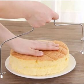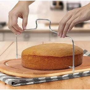 O Nivelador Fatiador para Bolos é um acessório perfeito para o corte em camadas e acabamentos profissionais e caseiros. O mesmo contem um ajuste de altura, através do mecanismo de regulagem, com duas linhas ajustáveis para realização dos cortes com total precisão. Utensilio ideal para personalizar a decoração de bolos, tortas, sobremesas entre outros. Produto extremamente eficaz, durável e apropriado para o uso constante. ESPECIFICACOES: Material: Aco Inox Comprimento: 31,5 cm Altura: 16,5 cm ITENS INCLUSOS: 1- Nivelador Fatiador para Bolos