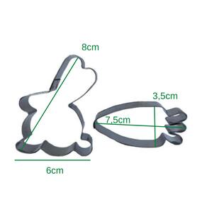 Cortador Coelho e Cenoura - 2 peças em aço inox. Ideal para modelar diversos tipos de massas como: Pasta Americana, Biscoito, Massa Biscuit. Perfeito para decorar Bolos, Cupcakes, Biscoitos, entre outros.