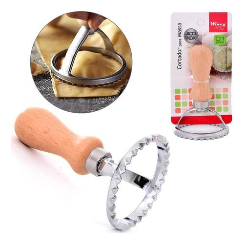 Cortador Molde Ravioli Massas Bolacha Redondo Em Inox Wincy. Feito em aço inoxidável de alta qualidade, esse cortador permite criar raviólis e biscoitos redondos com facilidade e rapidez. Com medidas de 10x6,5 cm, esse cortador é compacto e fácil de guardar. Sua cor prata traz um toque de elegância para sua cozinha. O cabo de madeira proporciona um manuseio confortável. Pesa apenas 65 gramas, o que o torna ainda mais prático de usar.
