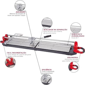 Tipo: Cortador Manual Piso Marca: Cortag Capacidade de Corte: 125 cm Profundidade do Corte em Milímetros: 15 mm Altura: 17,5 cm Largura: 31,5 cm Comprimento: 163,8 cm Dimensão: 163,8 x 31,5x17,5 mm Referência do Produto: 62318 Ean: 7897451423181