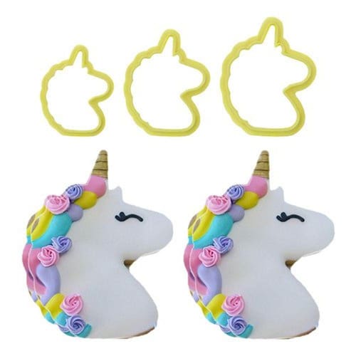 Kit cortadores unicórnio. São três opções de unicórnios com tamanhos diferentes. Faça lindos apliques para seus doces, bolos, tortas, lembrancinhas e decorações, surpreenda seus clientes e eleve o nível de seus trabalhos com o corte preciso e acabamento profissional que esses cortadores atribuem.