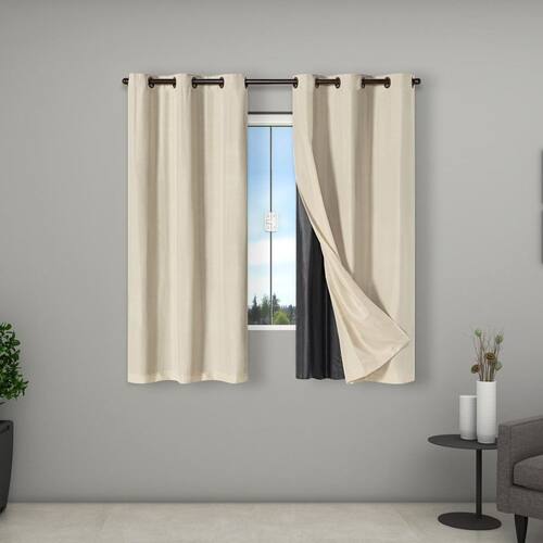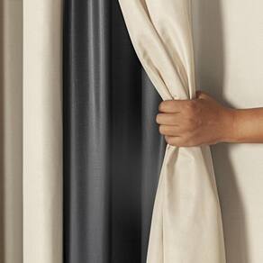 A cortina possuí duas partes, o blackout de PVC e por cima o Tecido Microfibra. O PVC é um tipo de plástico feito especialmente para cortinas. O PVC é da cor cinza, conforme mostramos na foto, é a parte cinza que faz vedar 99 % a luz. Por cima do PVC descrito anteriormente, a cortina possuí um tecido colorido, a Microfibra, costurado na parte superior do blackout, dando uma estética excelente para a cortina.
