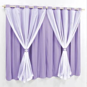 Cortina 2 Mts Sala Quarto Malha Com Voal Trilho Suisso Baratissima Lilás