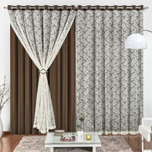 Cortina 2 Mts Sala Quarto Malha Renda Para Trilho Comum Baratissima Tabaco
