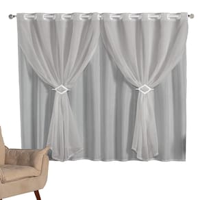 Cortina 2metros Voal Linho com forro Varão 2x1,7m Cinza