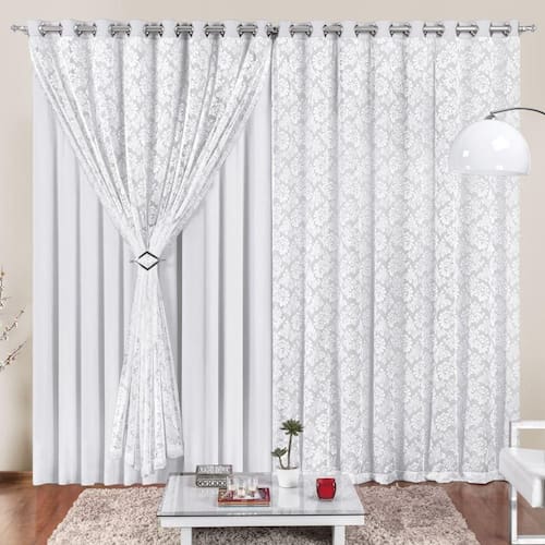 Cortina 3 Mts Sala Quarto Malha com Renda para Varão
