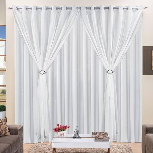 Cortina 3 Mts Sala Quarto Voal Com Microfibra Para Trilho Comum Branca