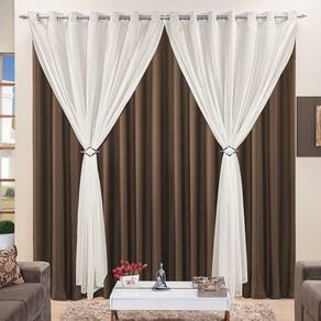 Cortina 4 Mts Sala Quarto Voal Com Microfibra Para Trilho Comum Tabaco Barata