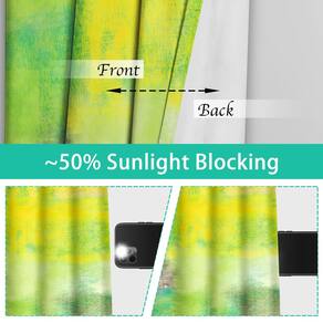 Cortina - [CONTEÚDO DA EMBALAGEM]: 2 painéis enferrujados impressos cortina de janela no pacote. Cada painel mede 132 x 213 cm. Cada painel tem 8 ilhós metálicos prateados, o diâmetro interno do ilhó é de 4 cm, se encaixa bem com hastes de cortina padrão ou decorativas. - [TEXTURA PREMIUM]: Estas cortinas enferrujadas são feitas de tecido 100% poliéster importado de alta qualidade, que é macio, sedoso, amigo da pele e tem uma boa cortina, contribuindo para o ambiente tranquilo. - [Design exclusivo]: as cortinas verdes amarelas têm um design abstrato. Cortina decorativa enferrujada e é uma excelente decoração para salas de estar, quartos e janelas. O padrão abstrato torna seu quarto elegante, adornando bem sua casa, escritório, apartamento, negócios, sala de jantar, quarto das crianças. - [Redução de ruído e proteção de privacidade]: estas cortinas blackout amarelas verdes podem bloquear 50% da luz solar, proporcionando a você um ambiente confortável para desfrutar de seus filmes favoritos ou ter uma boa noite de sono. As cortinas blackout são grossas e pesadas, elas podem reduzir o ruído e proporcionar privacidade. Os padrões abstratos são tão decorativos que também podem ser utilizados como cortinas divisórias de cômodo. - [Fácil de cuidar]: estas cortinas verdes amarelas oferecem grande durabilidade. Lavável na máquina em água fria. Secar em temperatura baixa. Passar a ferro rápido ou limpar a vapor em configurações de baixa temperatura. Estas cortinas blackout são laváveis na máquina e resistentes ao desbotamento da cor.