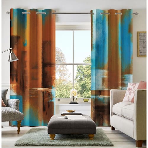 - [Design exclusivo]: as cortinas de ferrugem azul laranja têm um design abstrato. Cortina decorativa enferrujada e é uma excelente decoração para salas de estar, quartos e janelas. O padrão abstrato torna seu quarto elegante, adornando bem sua casa, escritório, apartamento, negócios, sala de jantar, quarto das crianças.