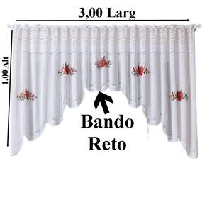 Cortina Bando Branca De Renda Cascata Cozinha 3,00 m larg X 1.00 m alt Flores, a melhor renda você vai amar, produto Original e Novo