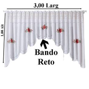 Cortina bando renda cascata branca 3,00 m x 1,00 alt rosas cortina bando branca de renda cascata cozinha 3,00 m larg x 1. 00 m alt flores, a melhor renda você vai amar, produto e novo