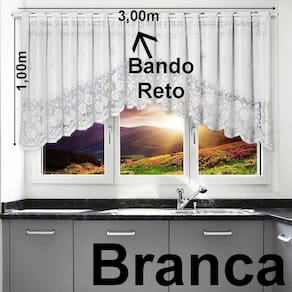 Cortina bando renda cascata branca 3,00 m x 1,00alt roseiral cortina bando branca de renda cascata cozinha 3,00 m larg x 1. 00 m alt roseiral, a melhor renda você vai amar, produto e novo