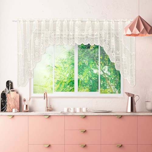 Cortina Bando Bule De Renda Cascata Cozinha 3,15x1,00 m alt, a melhor renda você vai amar