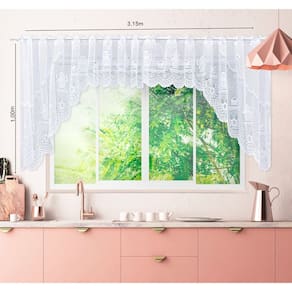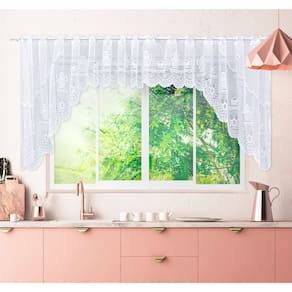 Cortina Bando Bule Branca De Renda Cascata Cozinha 3,15x1,00 m alt