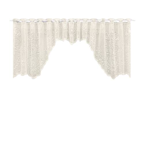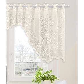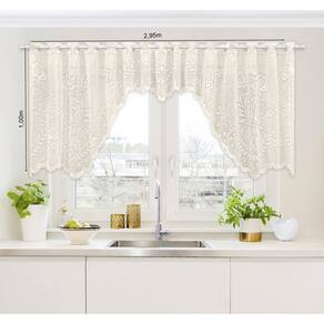Cortina Bando Floral Bege De Renda Cascata Cozinha 2,95x1,00m alt