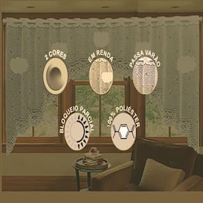 Tamanho: 1,00 x 0,40 x 3,00m altura x altura centro x largura Tecido: Renda com Estampa Categoria: 100% Poliéster Ambiente: Cozinha Ilhós: SEM Ilhós - Cortina Passa Varão Luminosidade: Permite luminosidade Sugestão: Varão tubular de 9 mm Lavagem: A mão com tecido macio e úmido e secagem à sombra Notas: Imagem ilustrativa Também Vendido a Metro Marca: Não Informado Ean: 7896536981028
