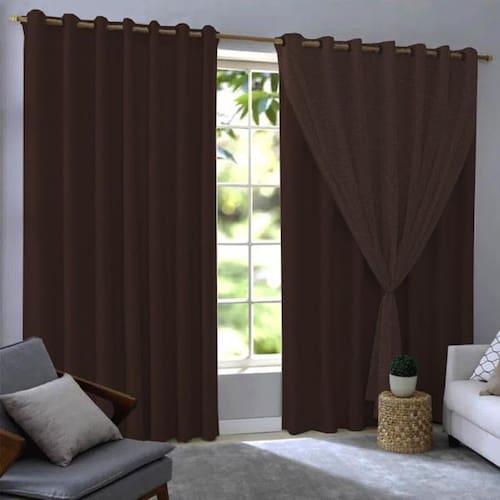 Cortina blackout com voil 280x230 corta luz pvc sala/quarto Cor: marrom Cortina de forro de blackout e voil 2,80 metros largura x 2,30 metros de altura