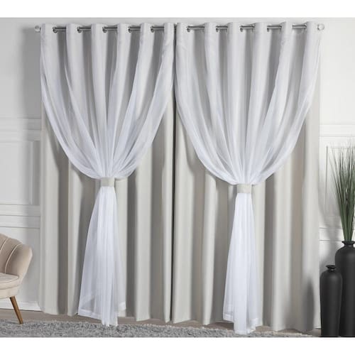 Cortina blackout com voil 4,00x2,50 off white quarto sala Cortina solaris com voil 4,00m x 2,50m