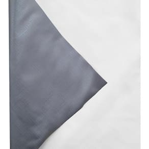 O pvc é um tipo de plástico especialmente feito para cortinas, possuí uma textura na frente para imitar um tecido. A parte de trás do pvc é da cor cinza, é a parte cinza que faz vedar 100 % a luz.