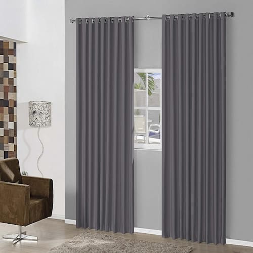 Cortina Blackout Em Tecido 6,00x2,80 Corta Luz Cinza Cortina Blackout Em Tecido 6,00 x 2,80 cortina em tecido blackout, os ilhós são Quadrados cromados, tecido com excelente caimento.