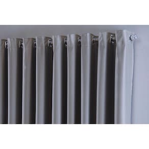 01- cortina em tecido 3,00 larg x 2,80 alt Ilhós quadrados e cromados prateados brilhantes Cortina aberta ao meio contendo 2 partes de 1,50 larg x 2,80 alt cada Cortina feita com 16 ilhos sendo 8 em cada parte..