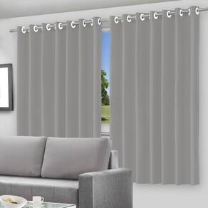Cortina Blackout Pelicula com Ilhós Cinza 280x280 Muito além de um importante item de decoração, as cortinas proporcionam iluminação mais adequada ao ambiente, bloqueando a claridade excessiva. Além disso, elas amenizam o vento, oferecem mais privacidade, conforto visual e térmico ao ambiente. Corre e aproveita todas as nossas opções para decorar sua casa. Indicada para varão de até 2 metros Varão não incluso .