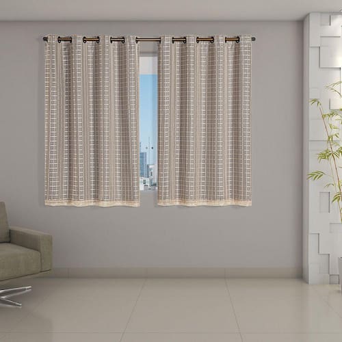 Cortina Blackout prata com Voil Xadrez 2,00 m x 1,40 m Avelã