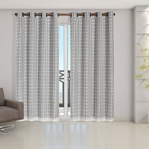 Contém: 01 Cortina 2,80 mts x 2,30 mts no total, sendo: 02 Partes de 1,40 mts x 2,30 mts com 16 ilhoses no total de 28 mm Indicada para varão simples de até 2,00 mts, é possível utilizar tanto o varão grosso 28 mm , quanto o fino 19 mm varão não incluso