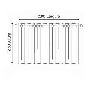 Contém: 01 cortina 2,50m altura x 2,80m largura no total, sendo: 02 partes de 2,50m altura x 1,40m largura com 16 ilhós brancos no total sendo 8 de cada lado Indicada para varão simples de até 2,00m