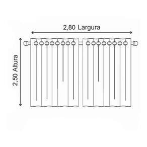 Contém: 01 cortina 2,80 mts x 2,50 mts no total, sendo: 02 partes de 1,40 mts x 2,50 mts com 16 ilhoses no total Indicada para varão de até 2 mts