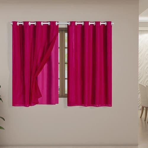 Contém: 01 Cortina 2,80 mts x 1,80 mts no total, sendo: 02 Partes de 1,40 mts x 1,80 mts com 16 ilhoses no total de 28 mm Indicada para varão simples de até 2,00 mts, é possível utilizar tanto o varão grosso 28 mm , quanto o fino 19 mm varão não incluso