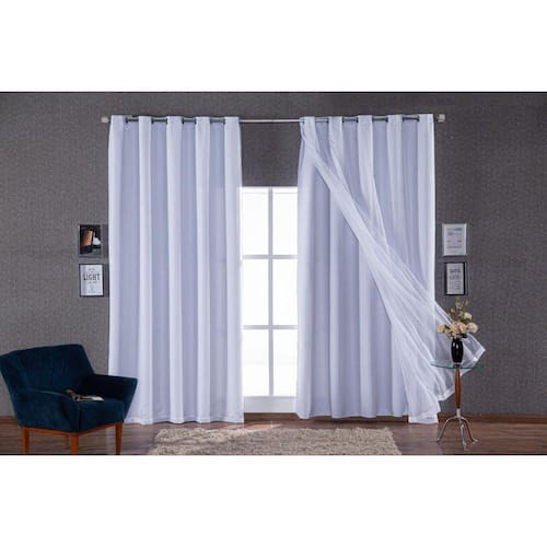 Cortina tecido blackout corta luz + voil 4 metros x 2,75 alturaObs: blackout 80% de cobrimento da claridadeDespacho imediato- medida: 4,00 metros largura x 2,75 alturaA largura do tecido de 4,00 metros é com ela esticada, por isso indicamos:- para varão de 3,00m ou menos.- para varão simples (28mm)Não acompanha varãoDescrição cortina:- ilhós cromado- bloqueia 80% - impede a passagem de luz e raios ultra violeta- nome do tecido: tecido de blackout- composição do tecido: 100% poliéster- o voil vai por cima do blackout e é da mesma cor escolhida da cortina e se une em cima, por isso são dois tecidos blackout + voil para um varão simples. Marca: Pilli Enxovais