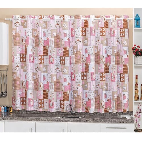 Cortina bule para cozinha em tecido oxford 2,40x1,50 01 cortina sem bandô 2,40m x 1,50m de altura ------------------------------------------------ Esta cortina contém 2 partes de 1,20m de largura x 1,50m de altura e 2,40m de tecido na sua largura total sem o franzimento.